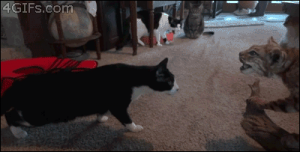 Tags: Forgifs.com #216, Stuffed bobcat cats reaction #1
