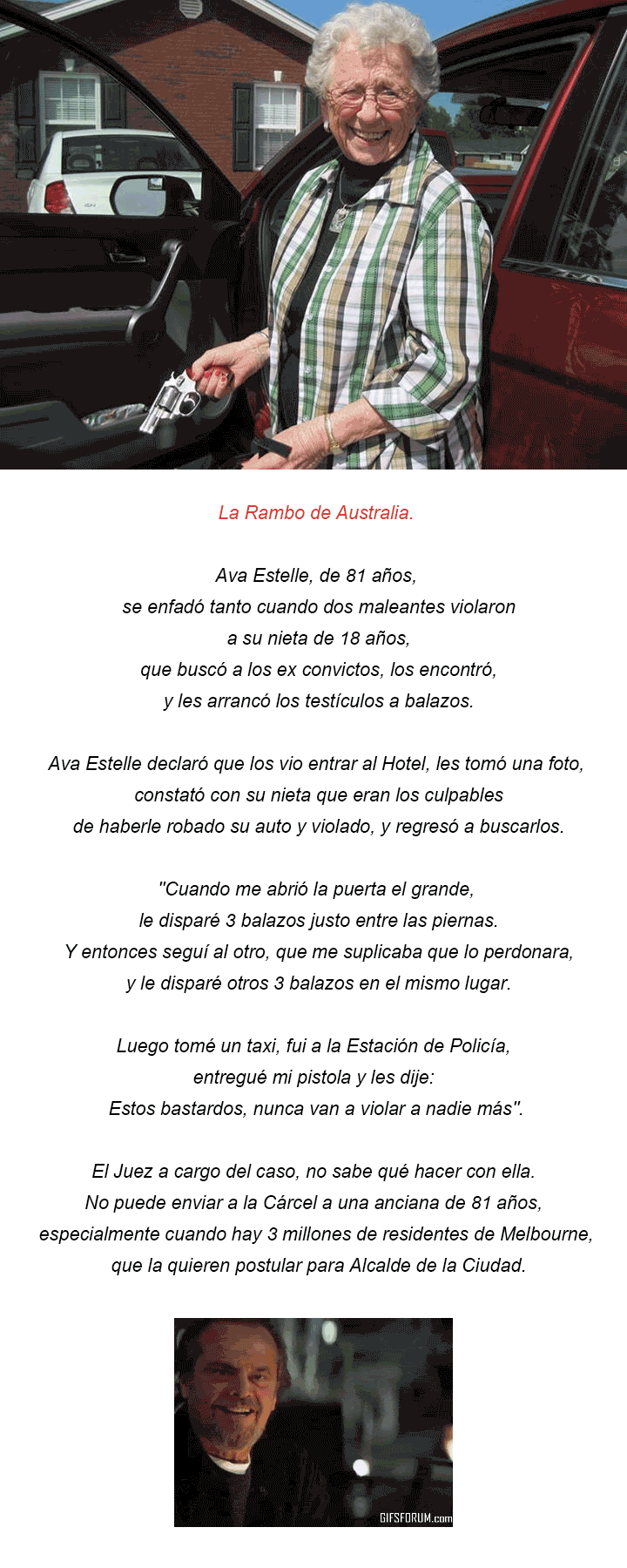 Tags: Vayagif.com #378, Asombrado #2, Disparar #5, Anciana #1, Cojones #1, Melbourne #1, Rambo #1, Venganza #1, Violación #1