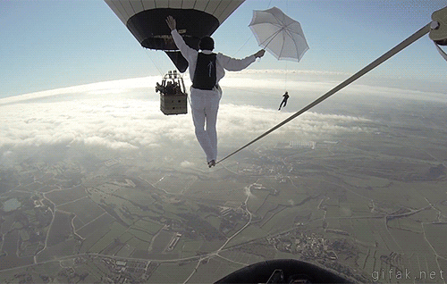 Tags: Fail #70, Vayagif.com #669, Troll #10, Caída #37, Paraguas #2, Viento #2, Cuerda floja #2, Globo aerostático #1